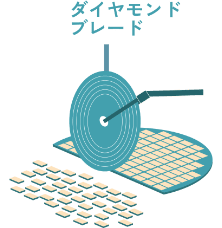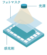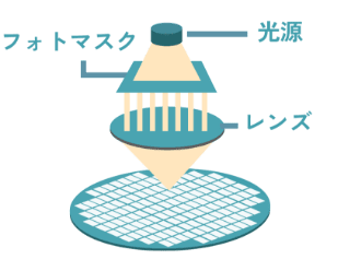ウェーハに回路パターンを焼き付け、イオンなどを注射することで微細な電子回路を形成します。