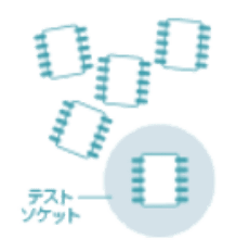 試験装置「テスタ」、パッケージ後の特性検査に用いられる「テストソケット」、